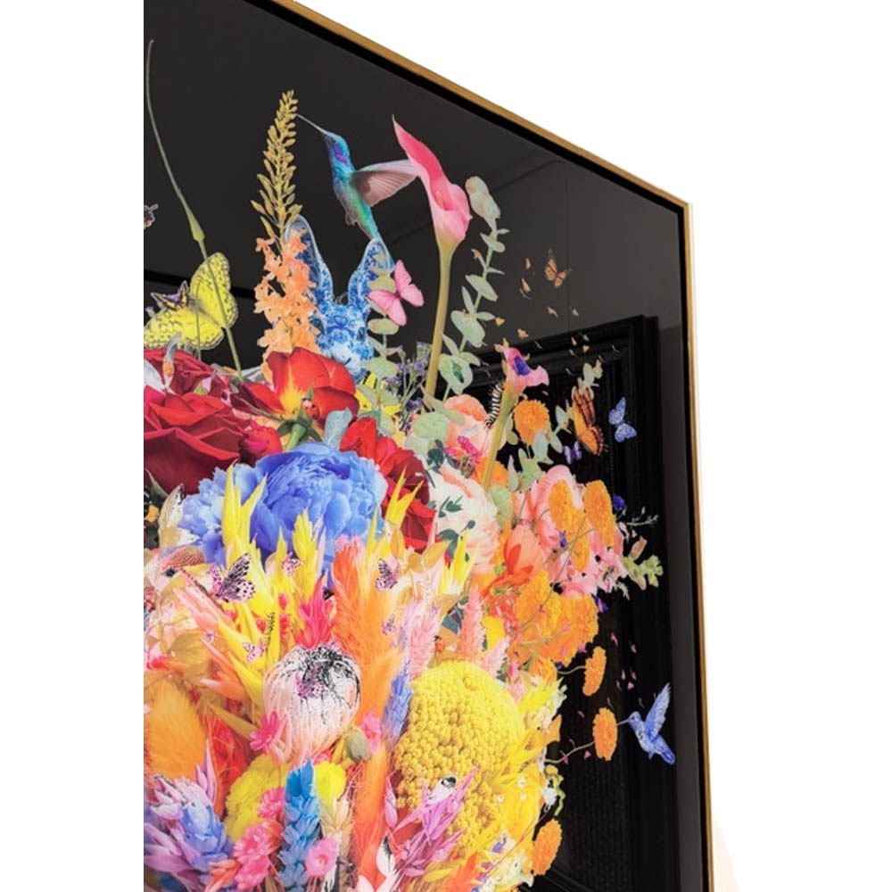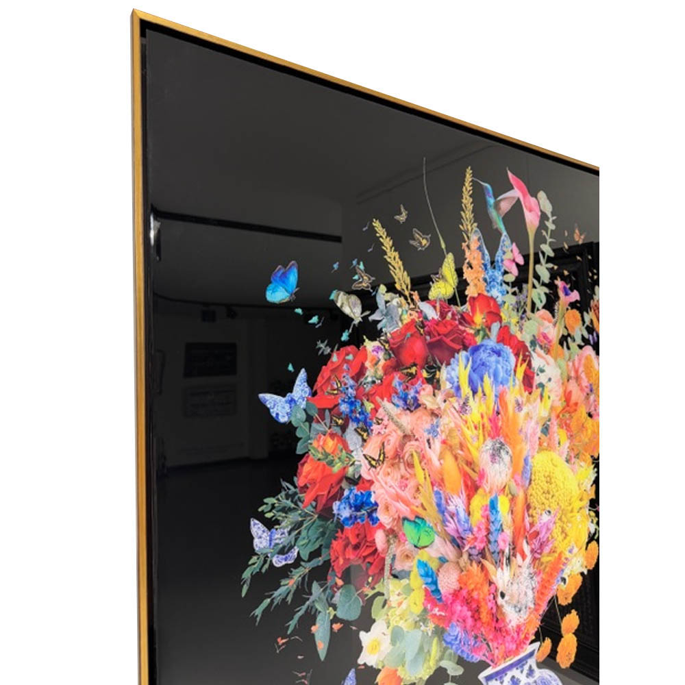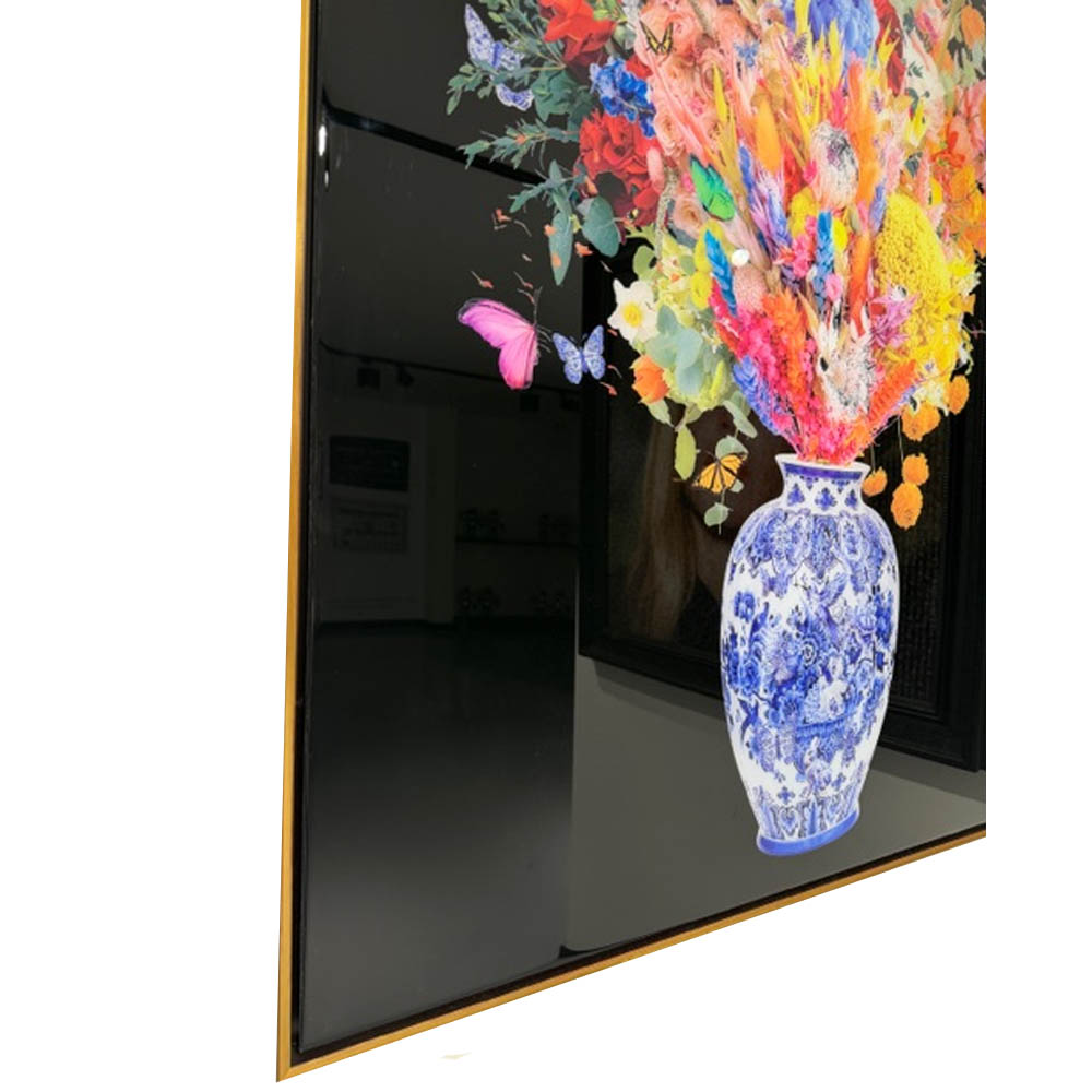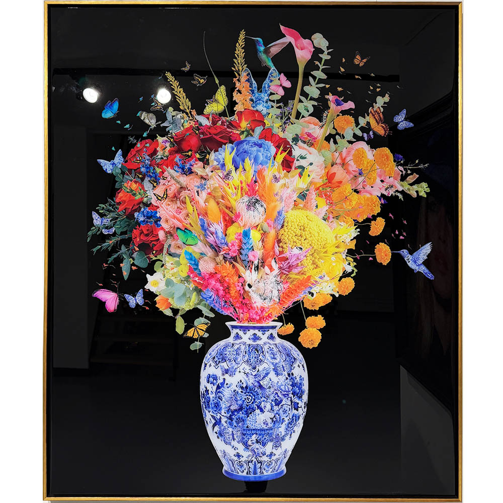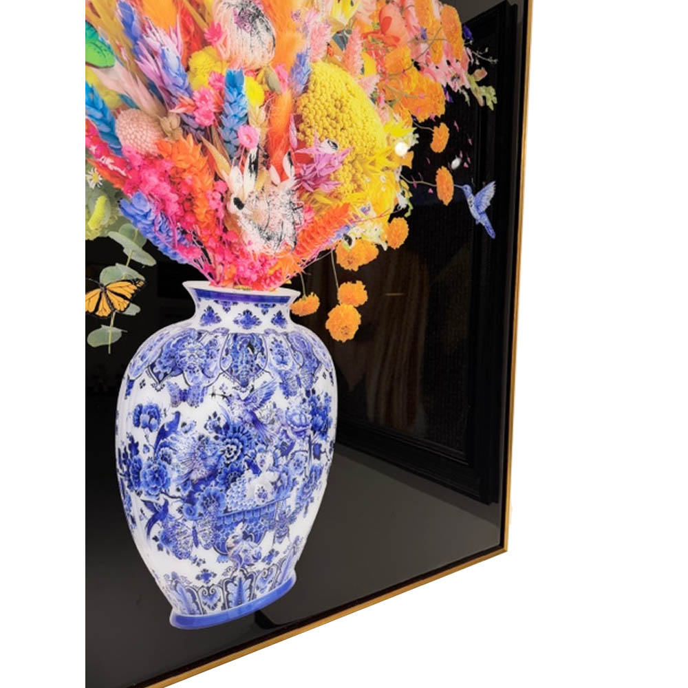 Blush & Blue is an amazing new Duo Flowers of Van Apple his latest release. The combination of the black background and the colorful flowers in the unique designed Vase creates a stunning effect. Combined with the epoxy, which the artworks have been covered over in multiple layers and the handmade golden/black frame it’s a true eye-catcher.